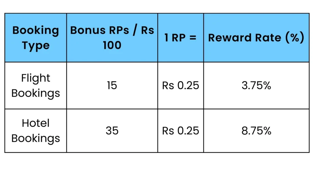 We get bonus RPs on flight and hotel bookings in addition to the monthly reward program.